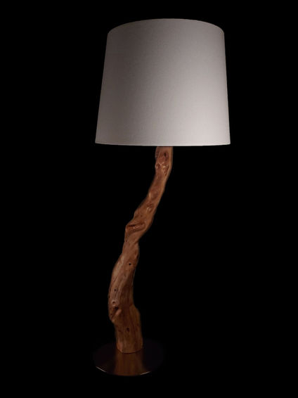 To preserve its natural allure, a water-based varnish lovingly envelops the wood, protecting its original color as though embracing a timeless romance. In a harmonious union, the cables of the lamp are seamlessly integrated into the wood, unseen by prying eyes, allowing the lamp to emanate a celestial glow from within.